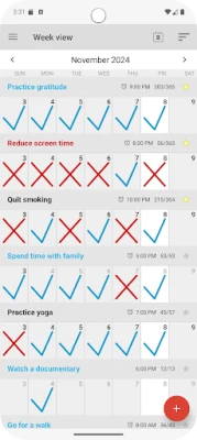Weekly progress calendar view. Log all habits / goals on one screen.