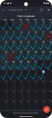 Monthly calendar view. Log all days on one screen.