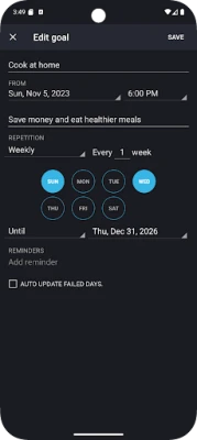 Schedule weekly habits / goals for any combination of week days.