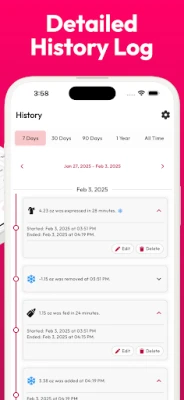 Manual Entry Flexibility: Forgot to log a session? No problem. Add pumping logs manually to maintain a complete record.