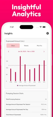 Daily Production Insights: Monitor your daily pumping times and total volume to stay informed about your milk supply trends.